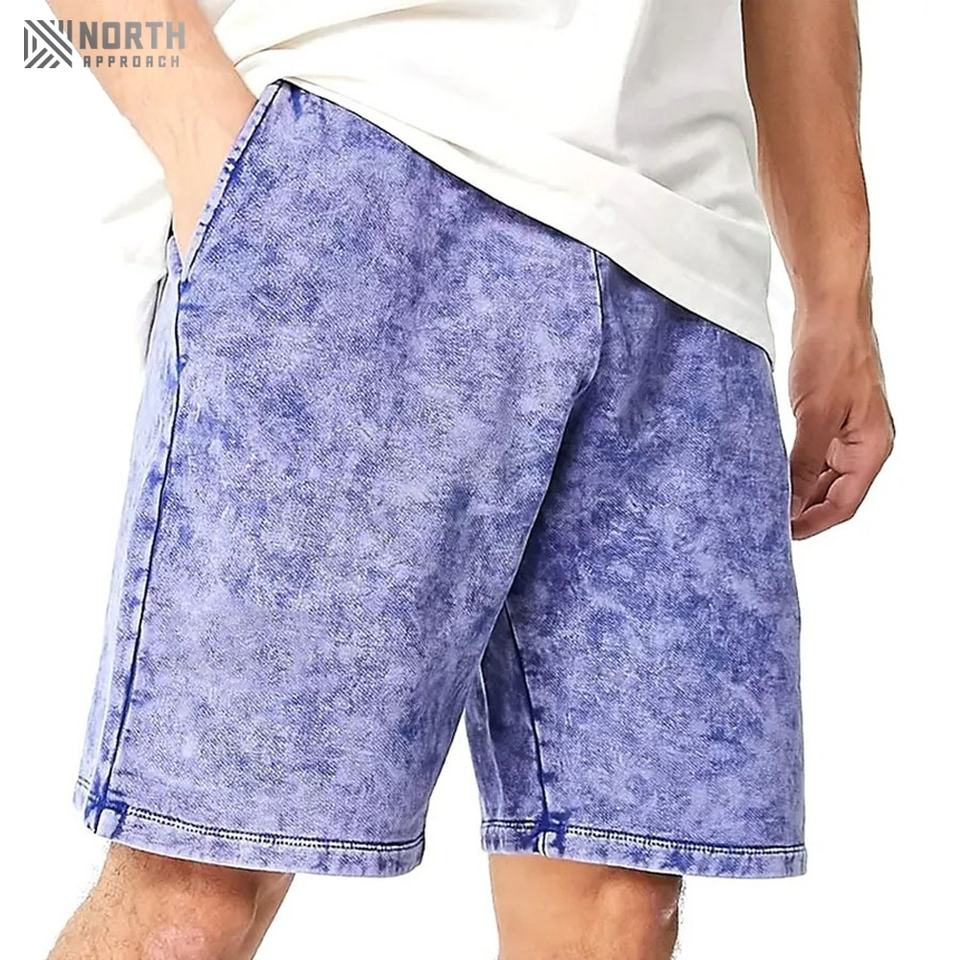 Pantalones Cortos Casuales de Verano para Hombre, Personalizados, de Poliéster/Algodón, Estilo Vintage, Lavado Ácido, Efecto Desgastado, Tejido Francés