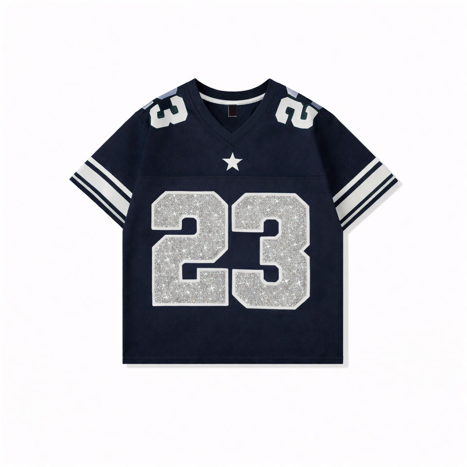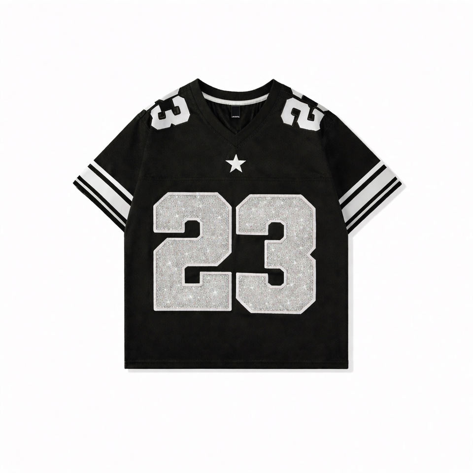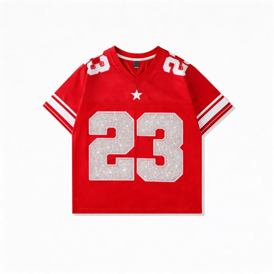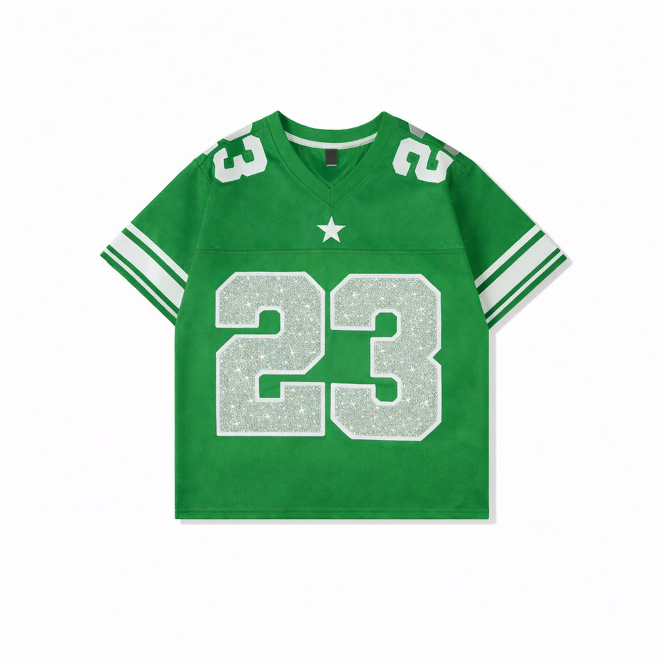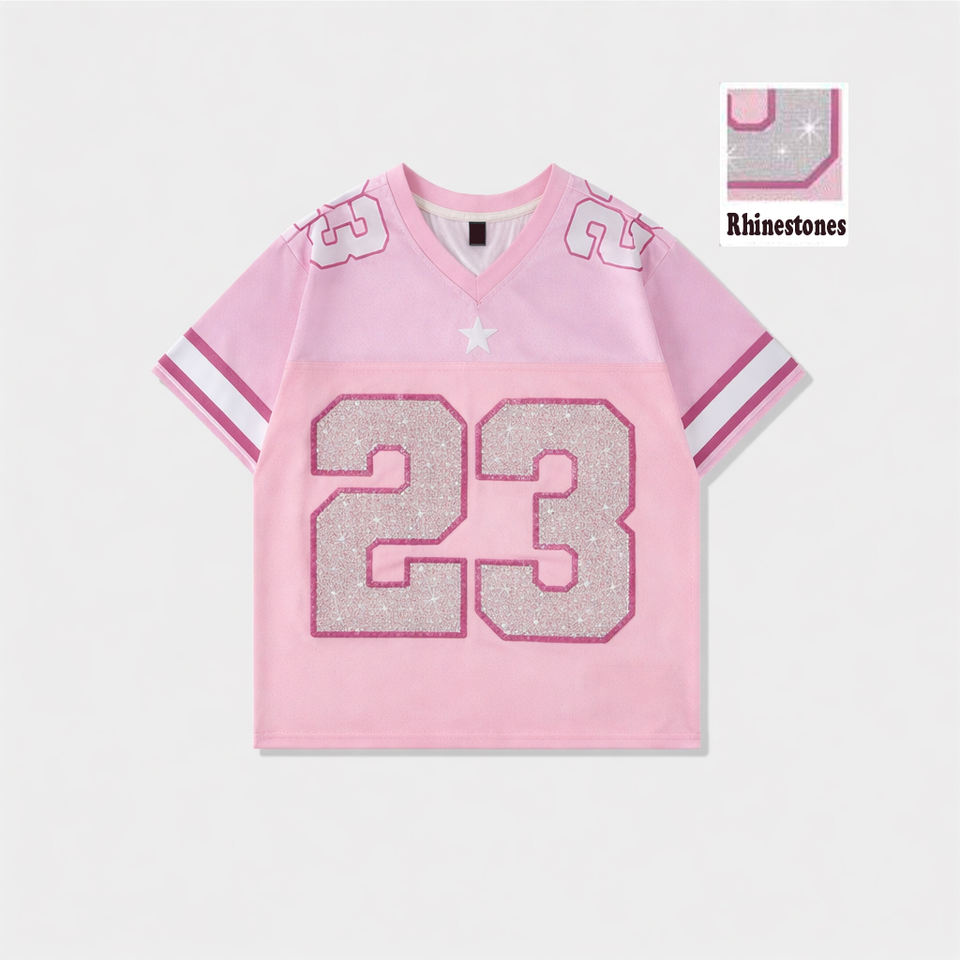 Camiseta de Fútbol Americano Personalizada para Hombre con Pedrería, Número Brillante, Camiseta Deportiva con Brillo para Ropa Urbana