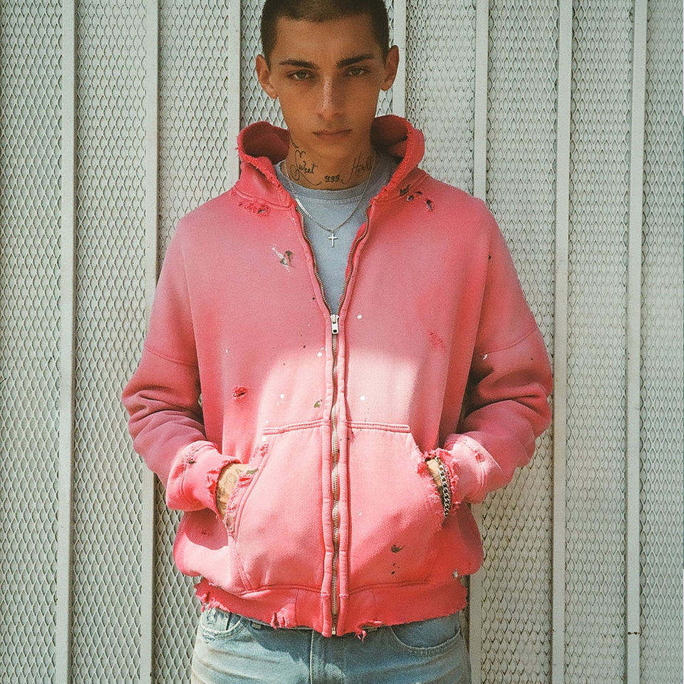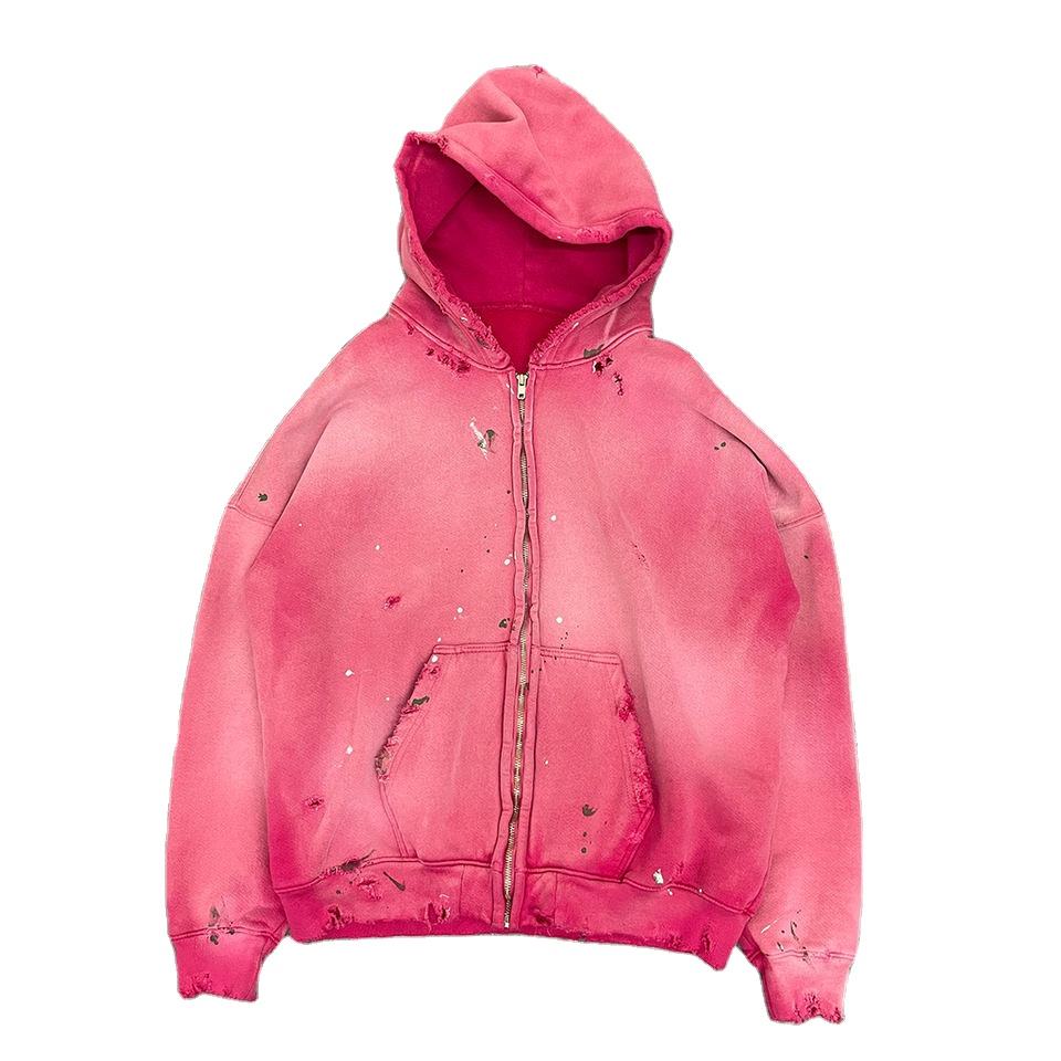 Sudadera con Capucha Personalizada para Hombre con Pedrería, Bordado Desgastado, Estilo Oversize, Lavado Ácido, Streetwear