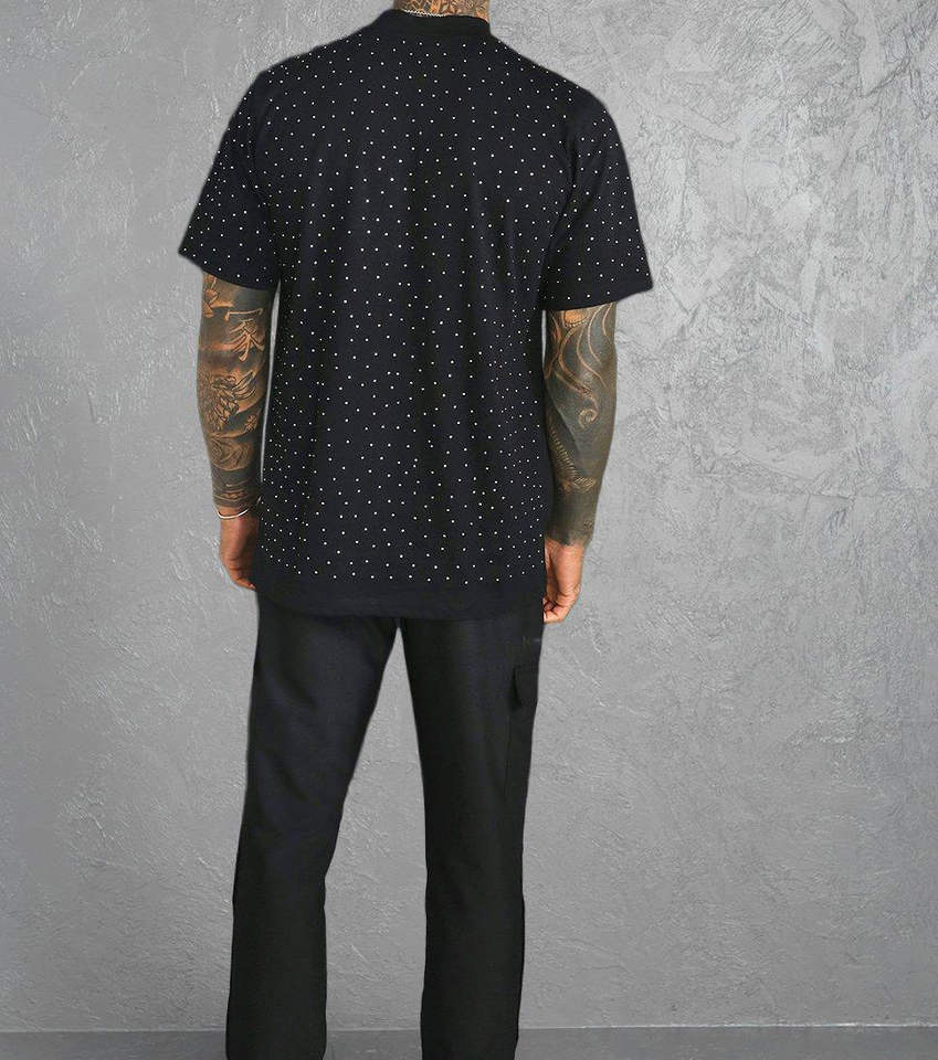 Camiseta Personalizada para Hombre con Pedrería, 100% Algodón, Color Sólido, Brillante, Transpirable, Ecológica, con Cristales, a la Moda
