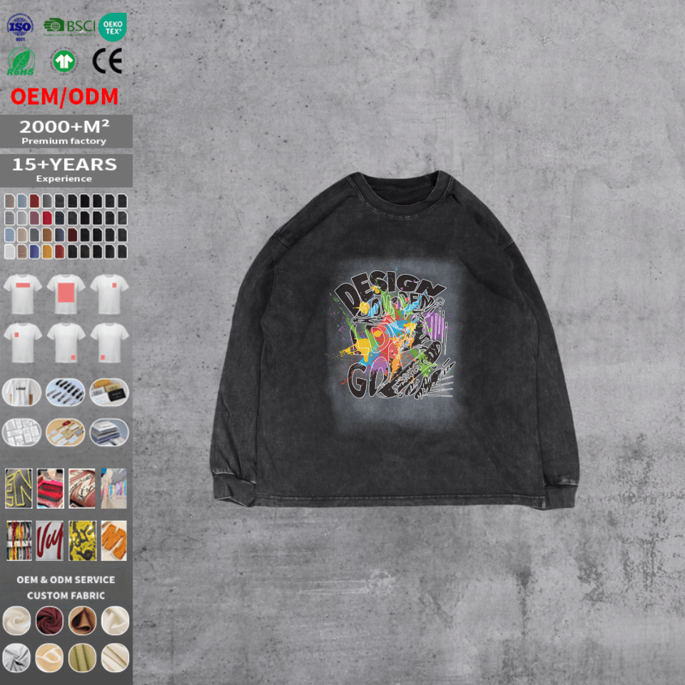 Camiseta de Manga Larga con Estampado de Serigrafía Personalizada para Hombre, Sudadera Holgada de Estilo Urbano
