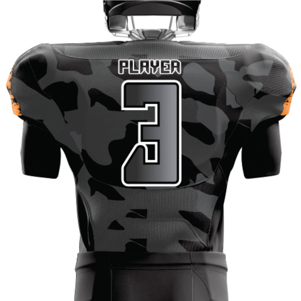 Conjunto de ropa deportiva de equipo personalizado para hombre, uniforme de fútbol americano de camuflaje naranja, nombre de jugador corto, Jersey de sarga de aparejos duradero transpirable