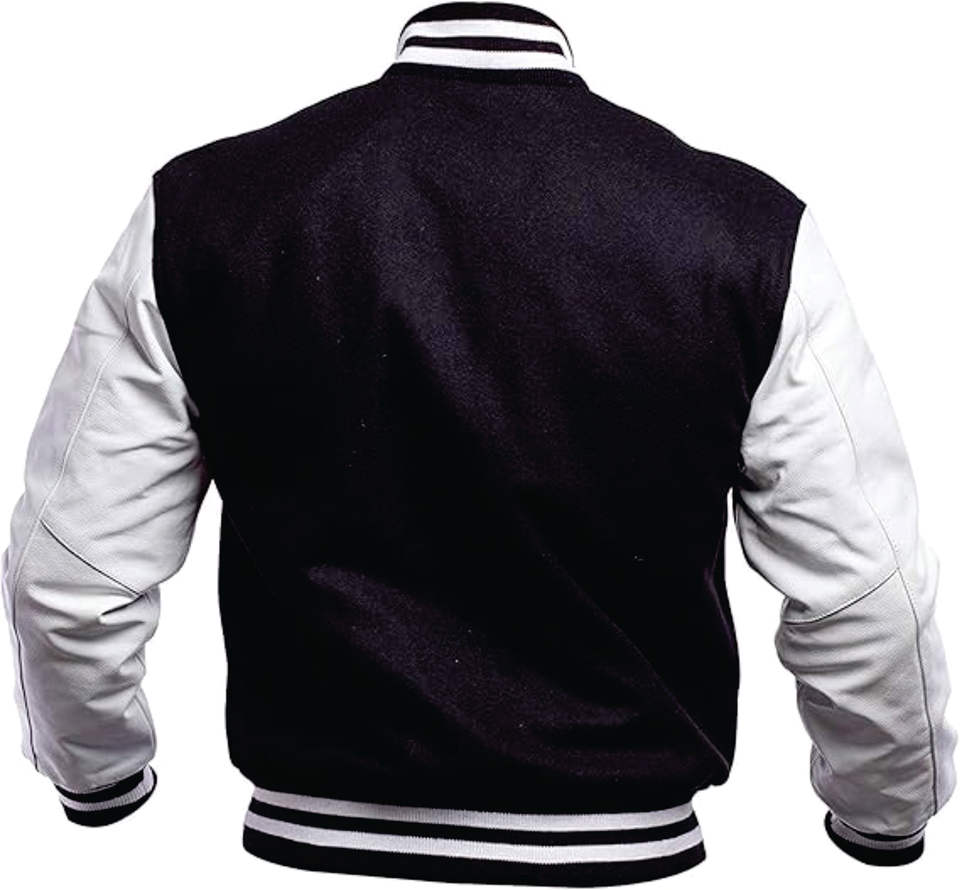 Chaqueta de bombardero de béisbol Varsity de lana personalizada para hombre, chaqueta de béisbol universitaria con letras de seda bordadas en blanco para hombre