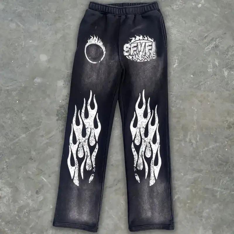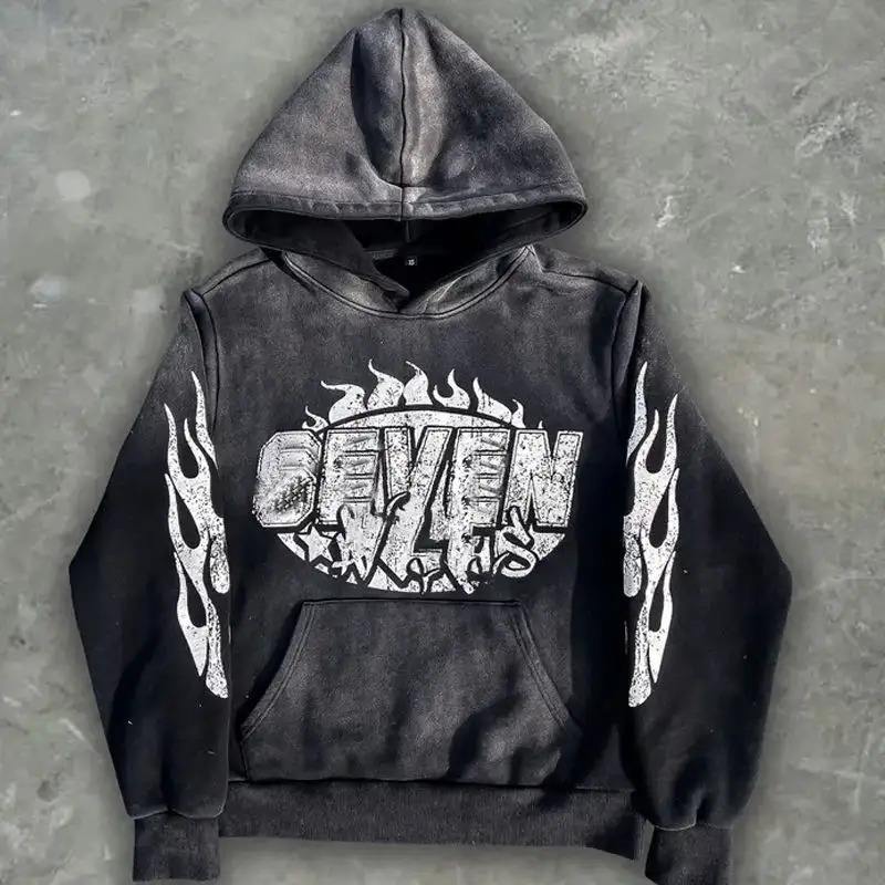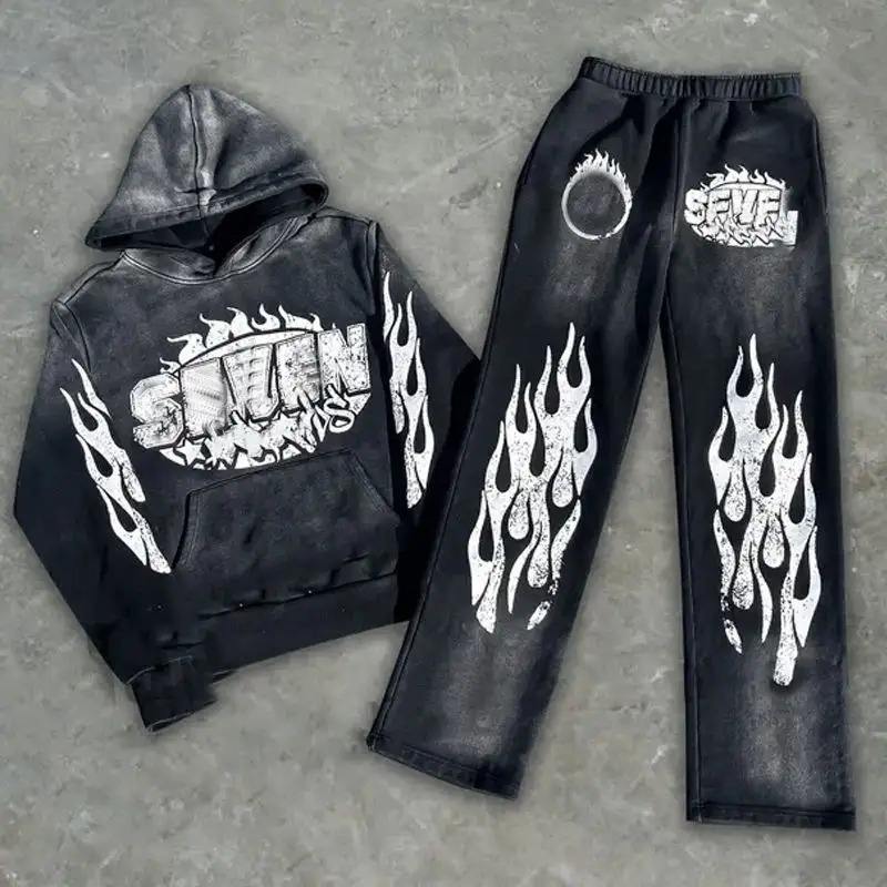 Conjunto de Sudadera con Capucha y Pantalones de Chándal para Hombre, Personalizado, Reversible, Transpirable, con Cremallera, Parches Desgastados, Lavado Ácido, Estampado, de Secado Rápido, Tallas Grandes