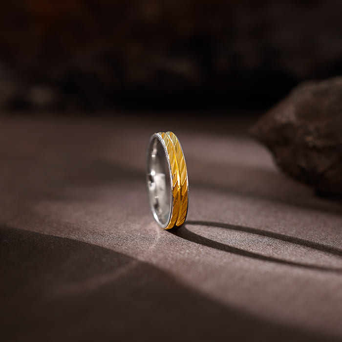 Anillo Personalizable para Hombre en Dos Tonos, Plata y Oro, Joyería Fina de 14k con Patrón Geométrico, Tecnología de Incrustación en Rodio, para Parejas
