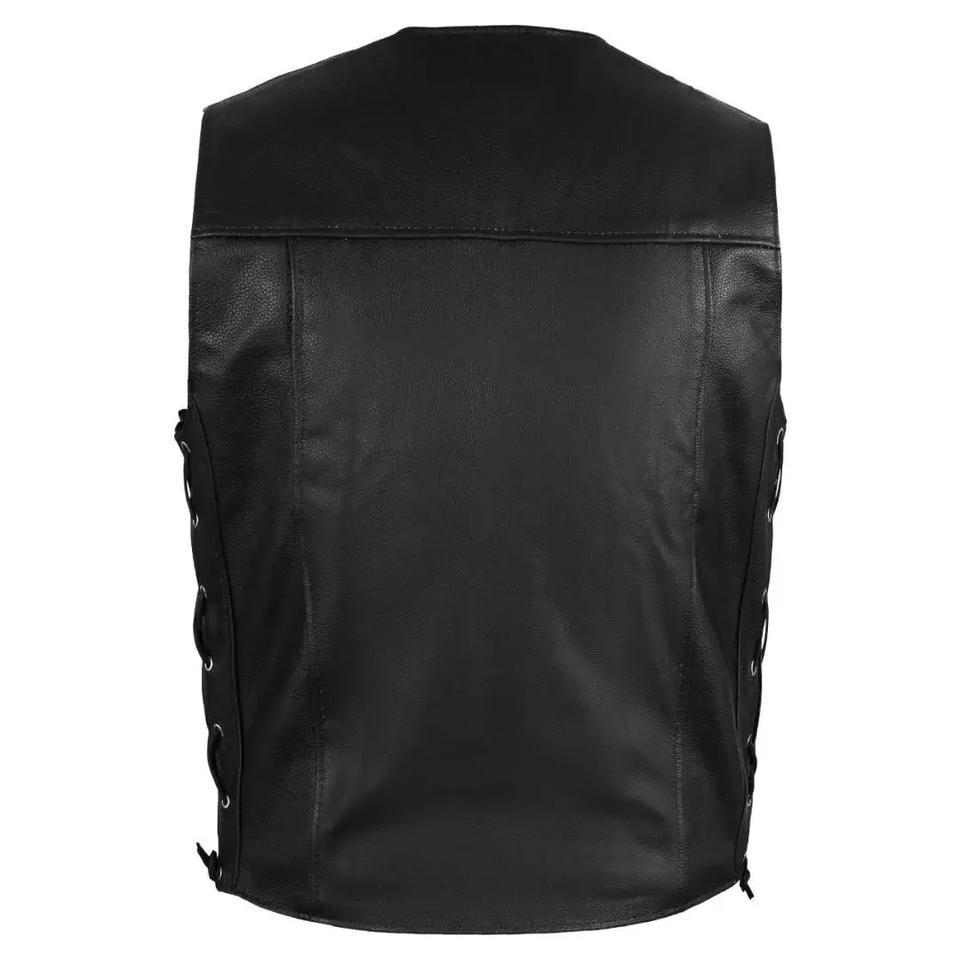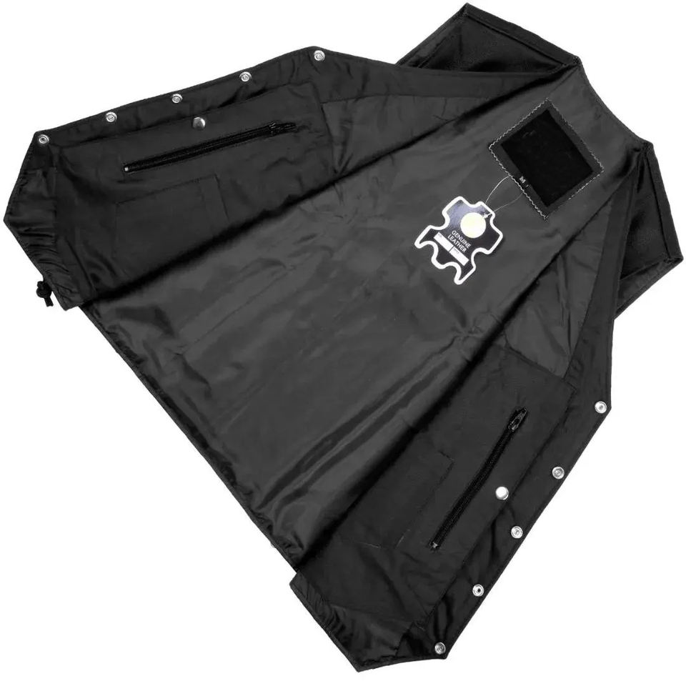 Chaleco de Motociclista de Cuero Negro Personalizado para Hombre con Chaleco de Diamantes, Marca Hecha a Mano para Tallas Grandes para Club de Motociclistas