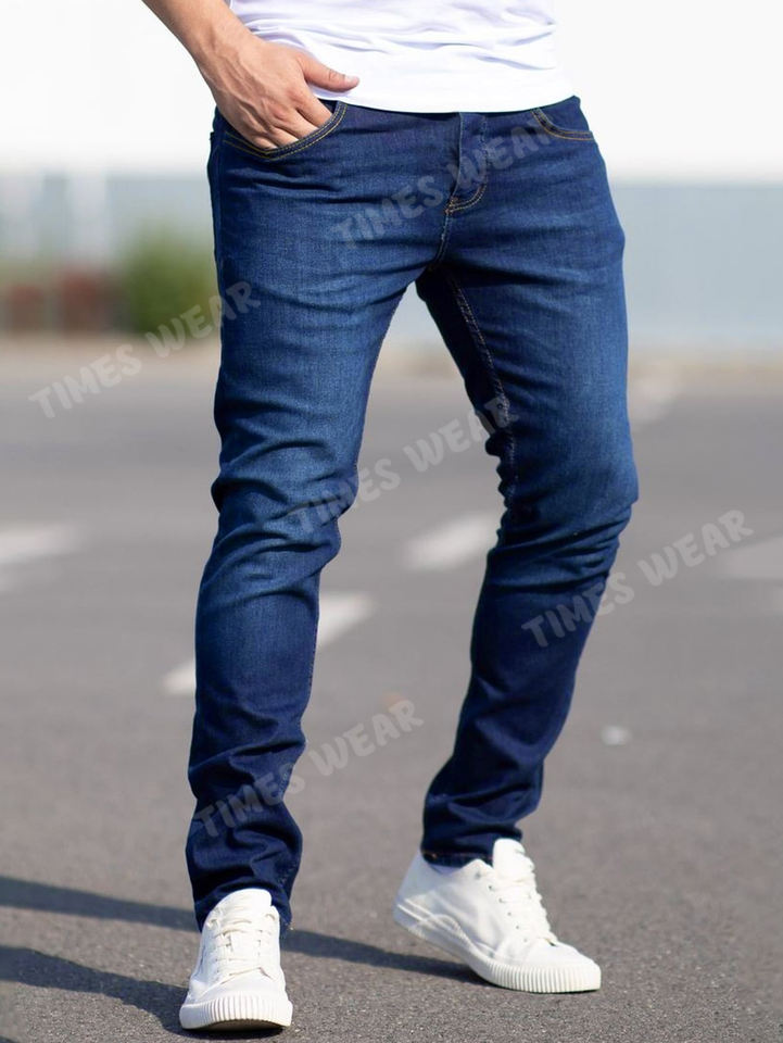 Pantalones vaqueros elásticos para hombre, ropa de oficina informal personalizada, a la moda, con bolsillo inclinado