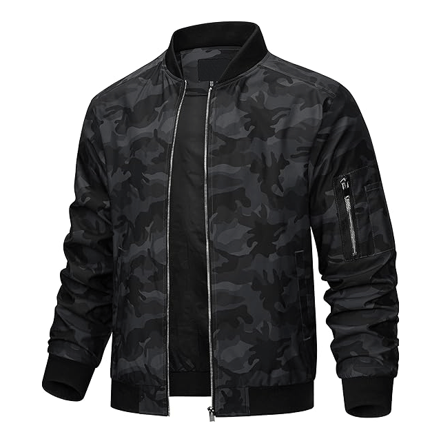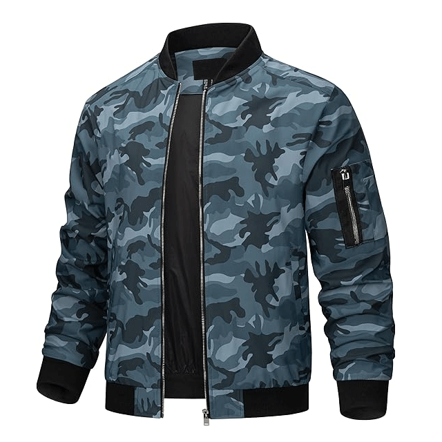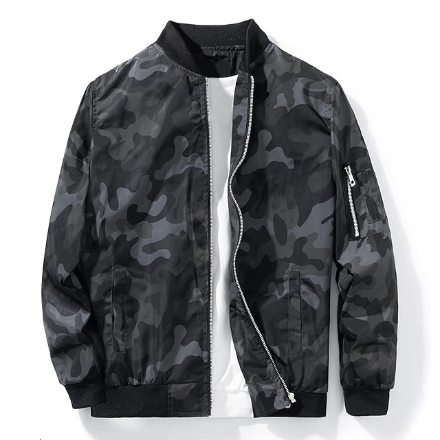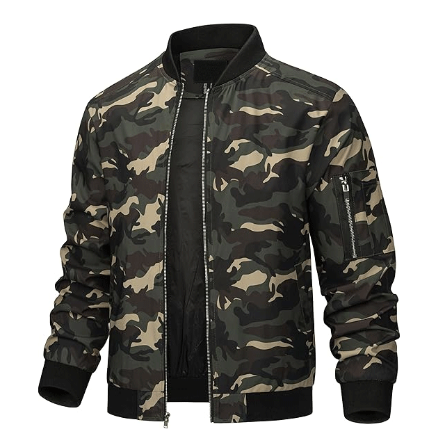 Chaqueta Bomber Deportiva Ligera para Hombre, Diseño de Camuflaje Personalizado, Cuello Marinero, Cierre Frontal con Cremallera