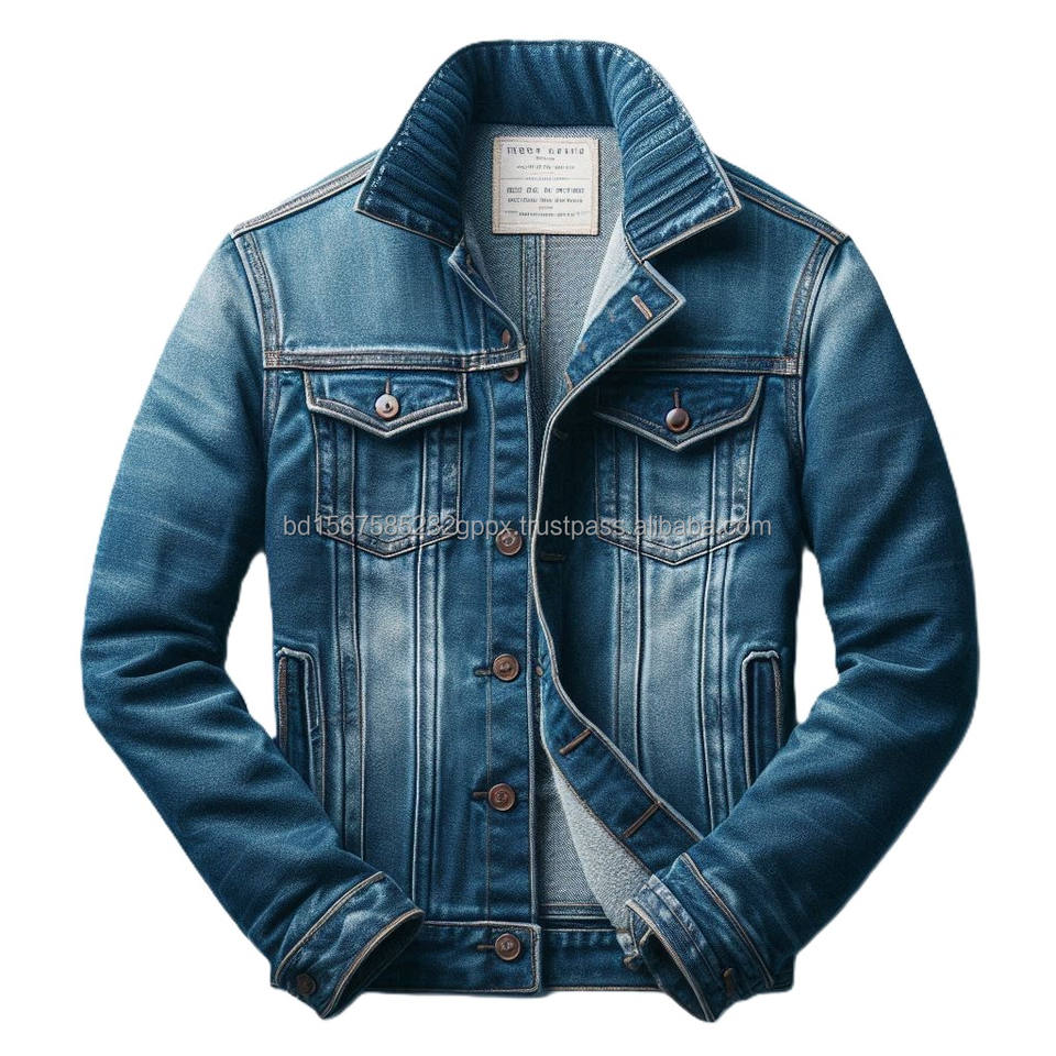Chaquetas de mezclilla para hombre con pecho y bolsillos calentadores de manos Mangas completas Tipos de cuello personalizados, estilos clásicos y vintage diseñados