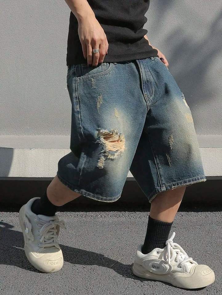 Pantalones cortos de mezclilla para hombre Eco-Friendly Vintage Washed Regular Fit para Otoño Invierno Festival Looks 2024