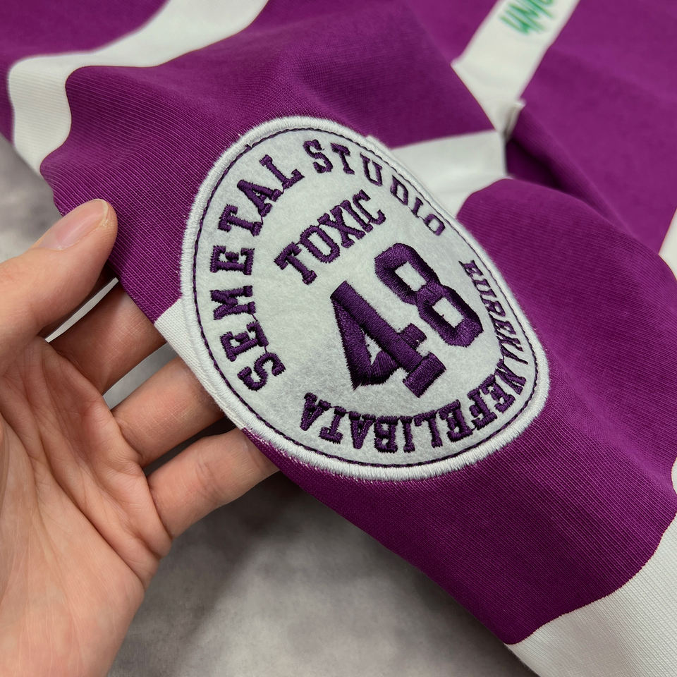 Camiseta estampada de algodón de gran tamaño para hombre, camiseta Polo abotonada de peso pesado, ropa de calle, camiseta de manga larga a rayas personalizada