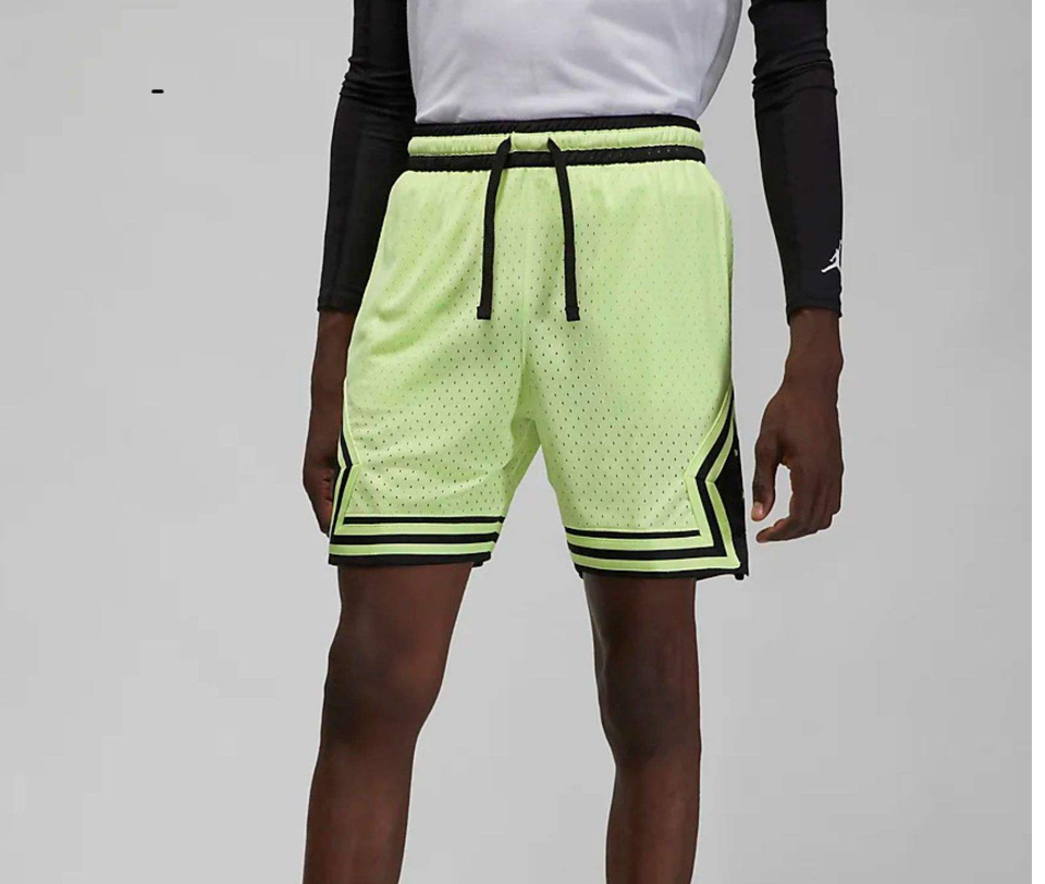 Pantalones cortos de diamantes para hombre, malla de poliéster 100%, luz líquida, Lima y negro, con cintura elástica y cinta de punto a rayas
