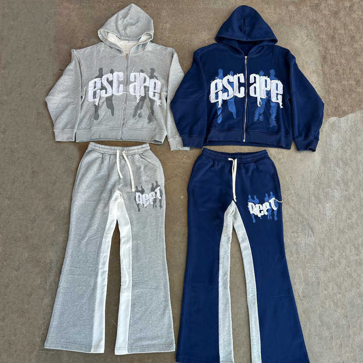 Conjunto Deportivo para Hombre con Bordado Desgastado y Estampado Puff, Transpirable, Lavado Ácido, Pantalones Acampanados, Chándal de Algodón para Invierno