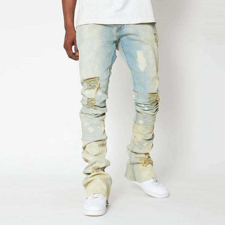 Jeans Rotos Degradados Desgastados para Hombre, Acabado Vintage Lavado, Jeans Destruidos de Estilo Urbano para Conjuntos Casuales de Ropa Urbana