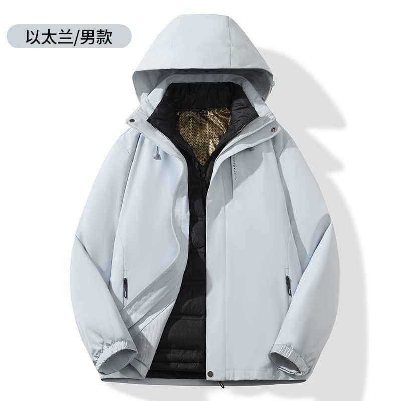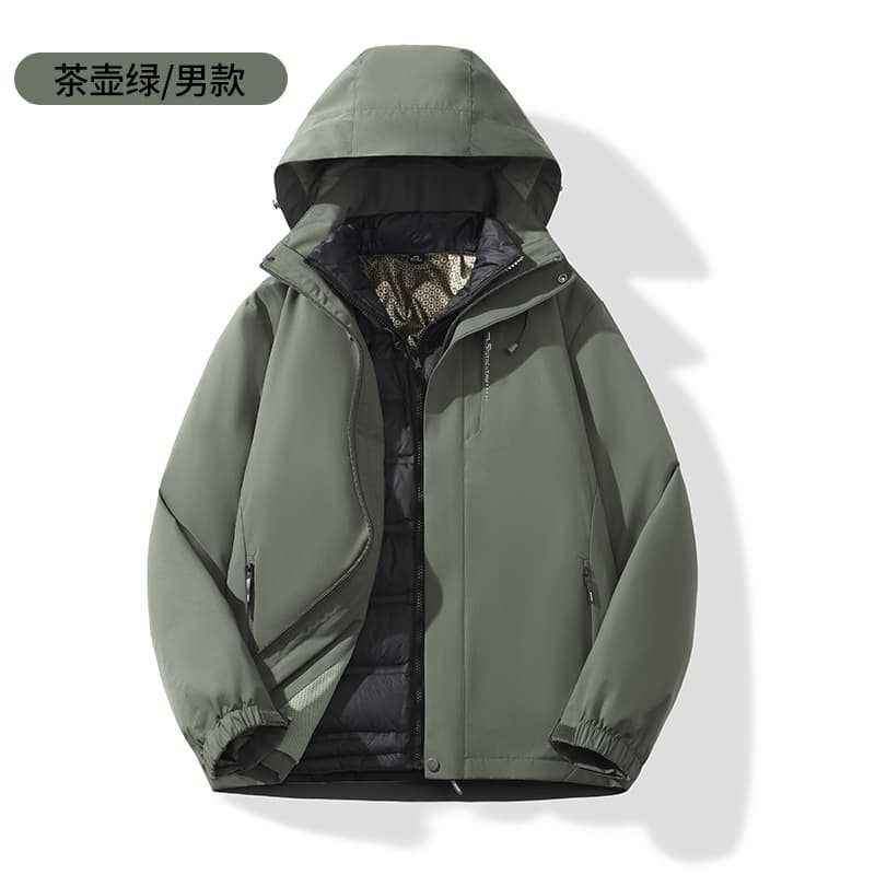 Men's Down-Filled 3-In-1 Windproof Jacket With Hood For Outdoor Wear