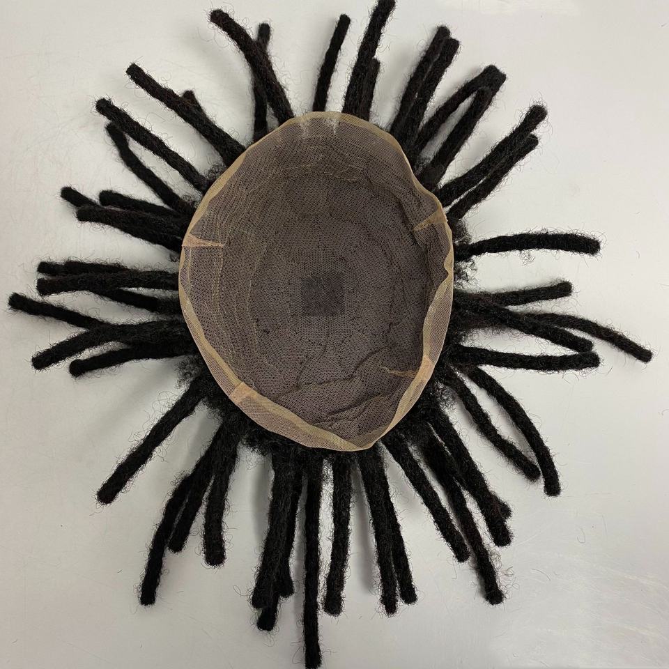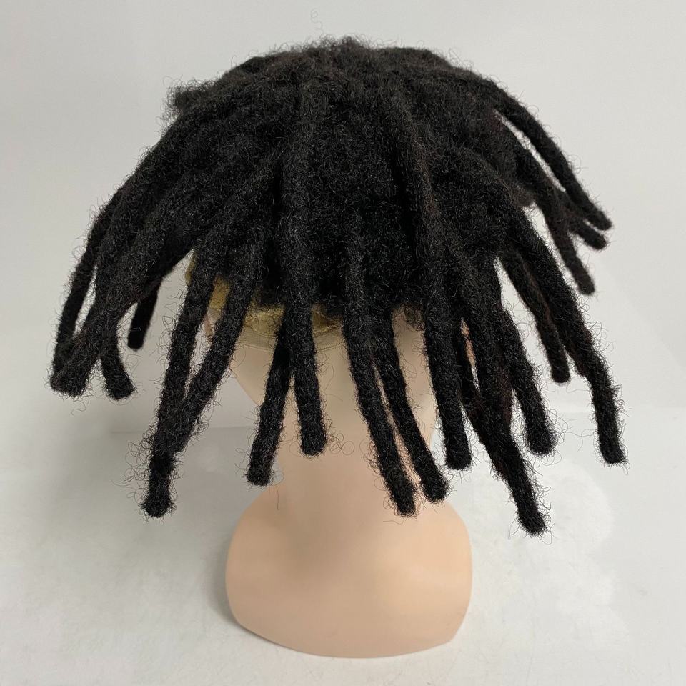 Peluca de rastas para hombre, peluca trenzada, negro azabache, prótesis de cabello humano Remy indio, pelucas de rastas para tupé tipo encaje menfull