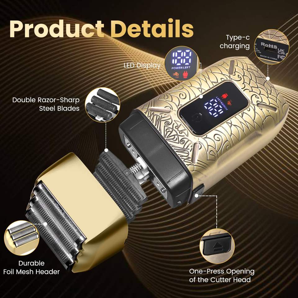 Afeitadora Eléctrica Inalámbrica para Hombre, Afeitado en Seco y Húmedo, con Triple Cuchilla, Resistente al Agua IPX7, Lavable