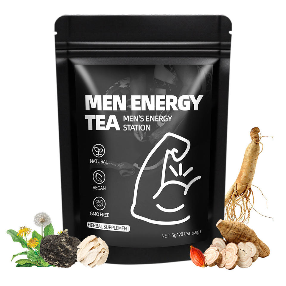 Té Energético para Hombres, Apoyo a la Fertilidad, Ginseng, Dátiles Rojos, Morera, Eucommia, Sin Azúcar, Orgánico, Vegano, Bolsitas de Té de Hierbas, Circulación