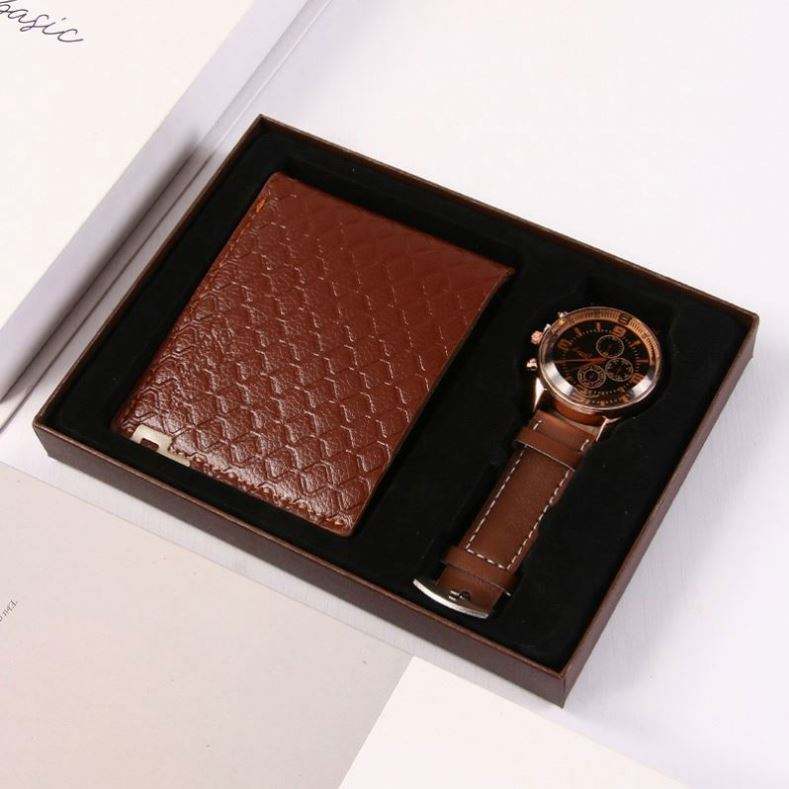 Exquisito Set de Regalo para Hombre: Cartera y Reloj, Regalo para el Día del Padre, San Valentín o para Compañeros de Negocios, para Eventos Especiales
