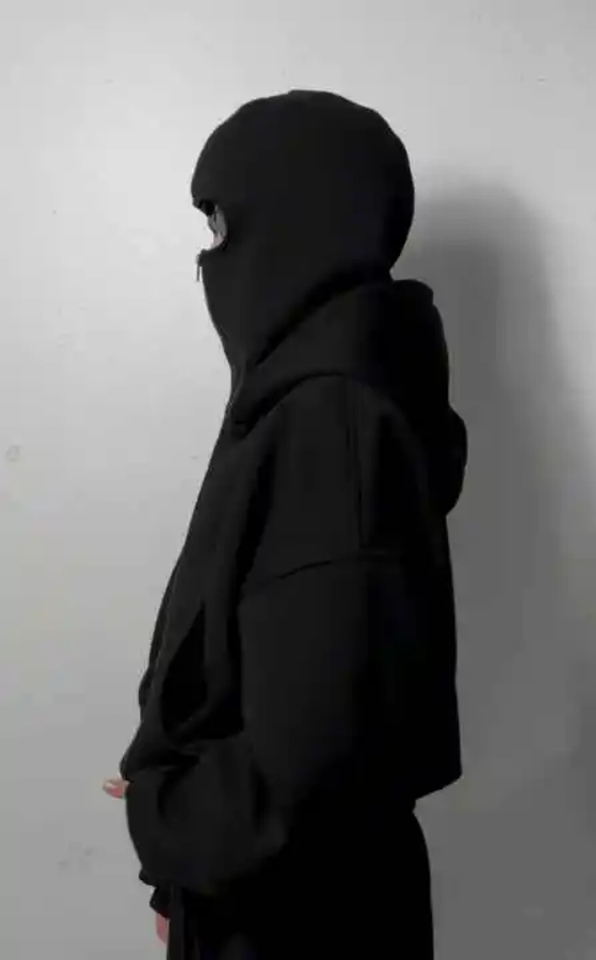 Ropa de Hombre con Capucha y Máscara, Elástica, Estilo Ninja y Pasamontañas, Camiseta Negra y Gris de Verano, Alta Calidad