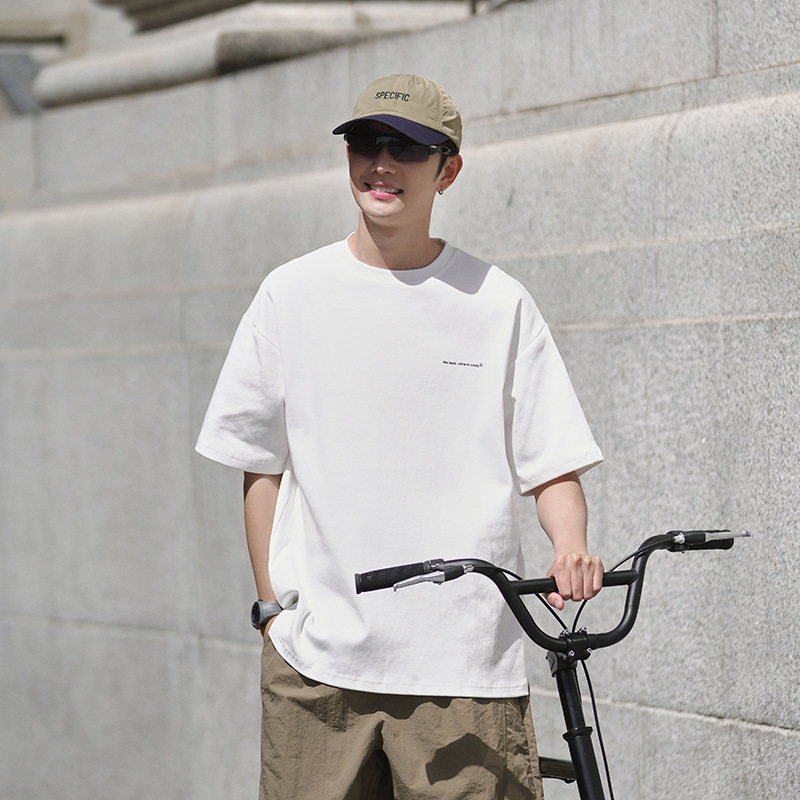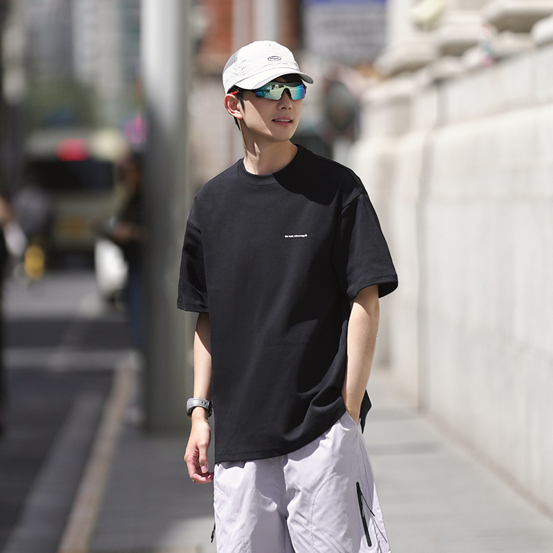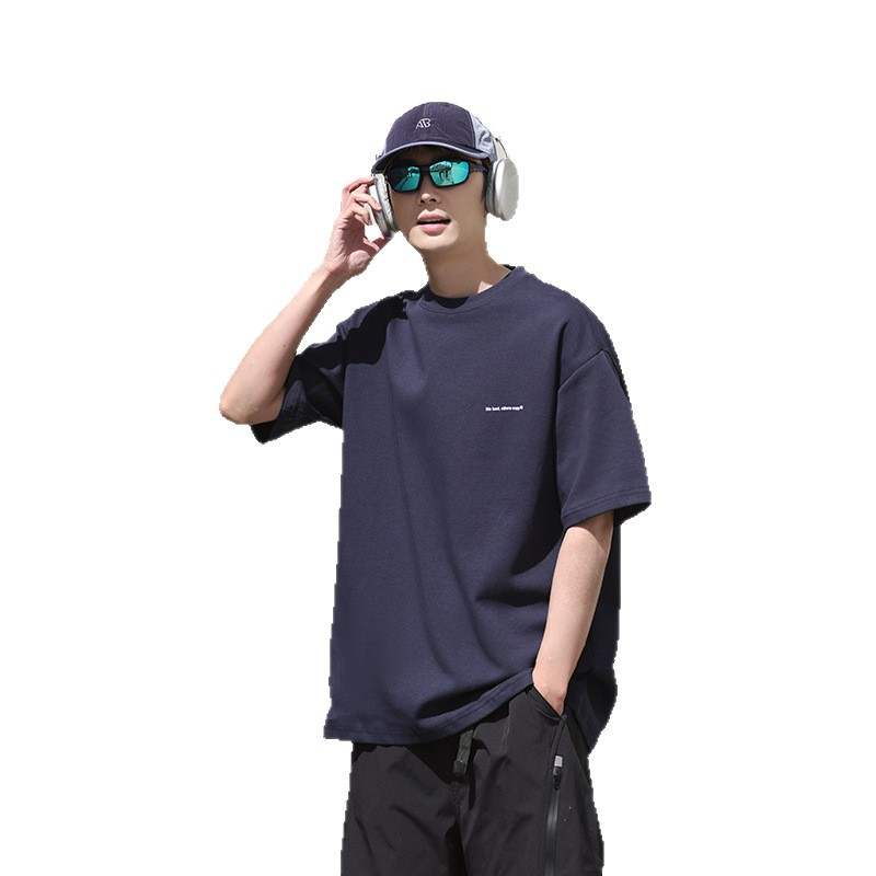 Camiseta holgada a la moda para hombre, camisetas de entrenamiento atlético con cuello redondo, Camiseta básica de algodón Premium de manga corta de peso pesado