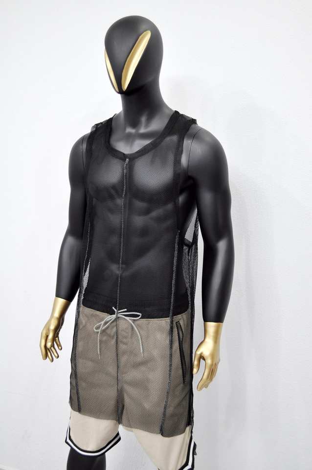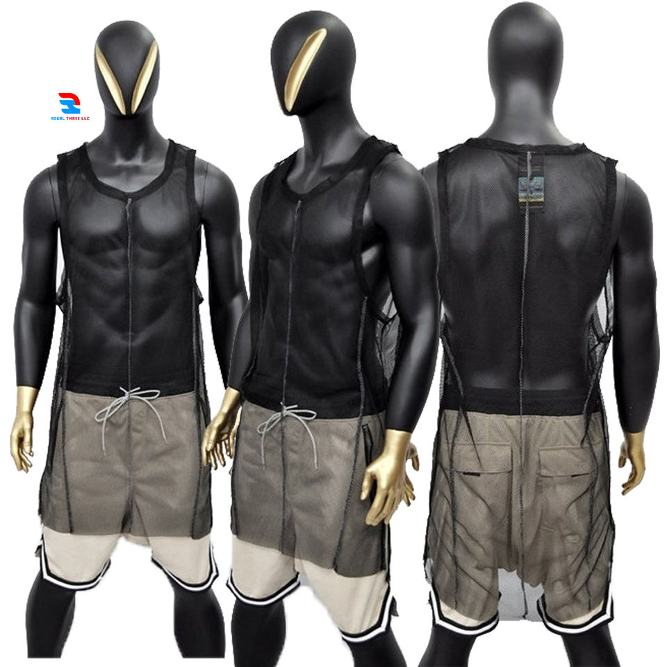 Camisetas sin mangas de malla larga de rejilla para hombre, 100% poliéster, respetuosas con el medio ambiente, ligeras, de secado rápido, ropa de calle alta, estilo de moda