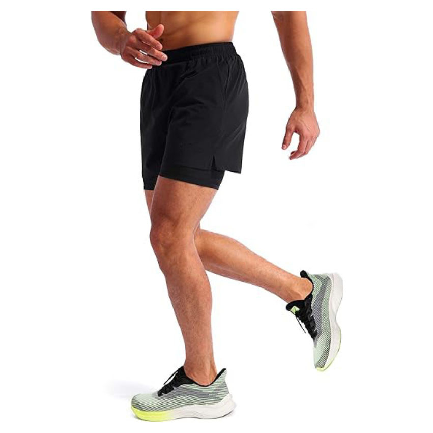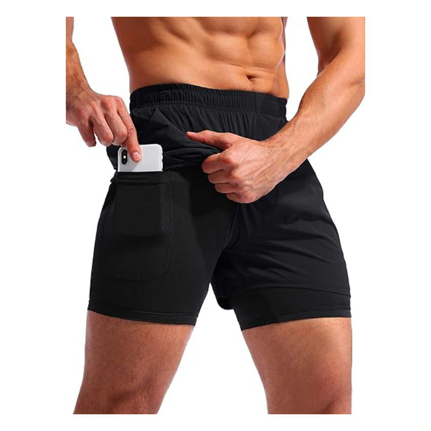 Pantalones cortos con estampado de doble capa para entrenamiento físico para hombre, 2 en 1 Pantalones deportivos, pantalones cortos informales de compresión para entrenamiento de verano