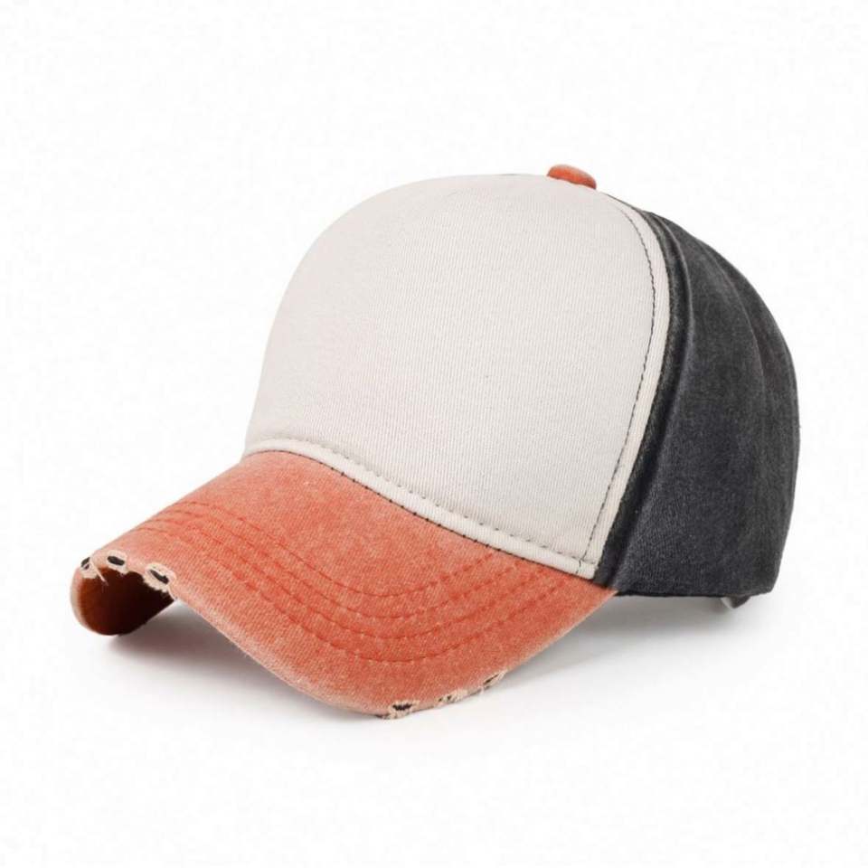 Gorra de béisbol de cinco piezas para hombre, a juego de colores, estilo vintage con agujeros, protección solar