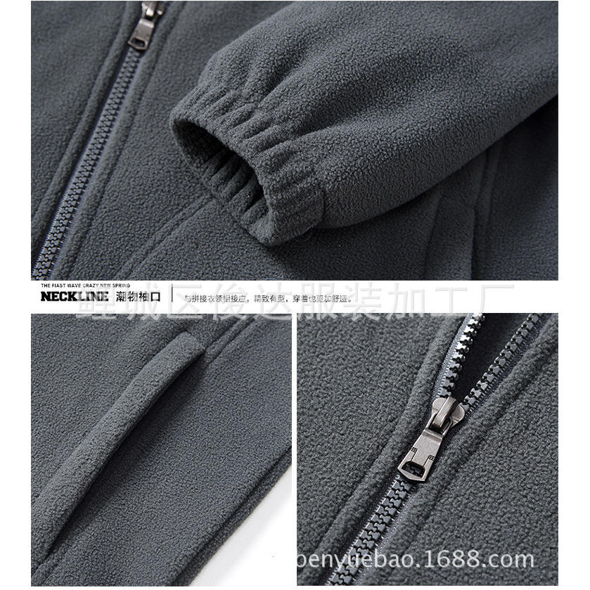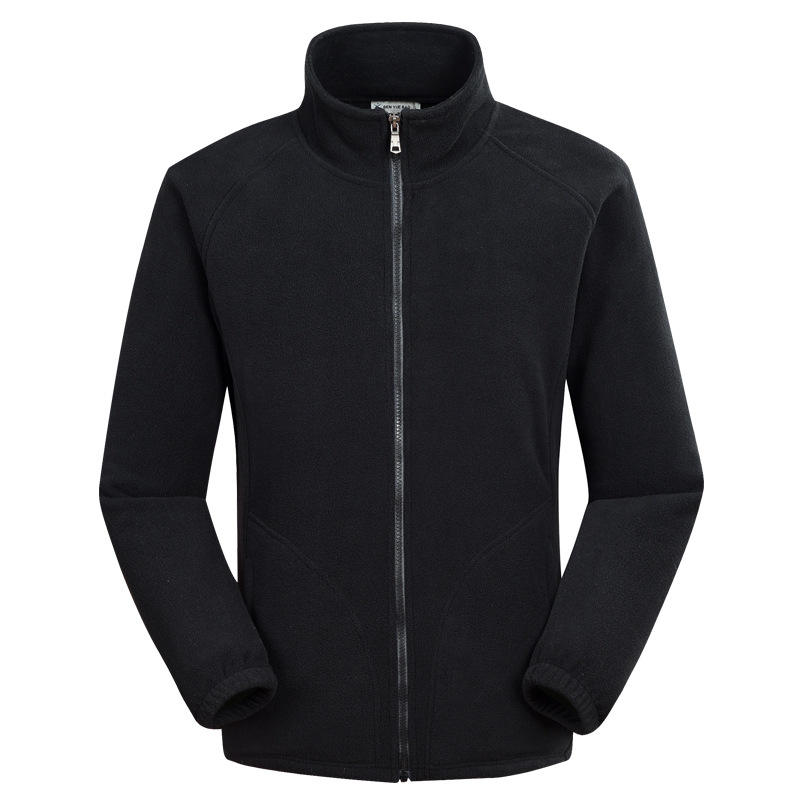 Chaqueta Casual de Forro Polar para Hombre, con Cierre Completo, Resistente al Viento, Color Negro Sólido, Ropa Abrigada para Exteriores