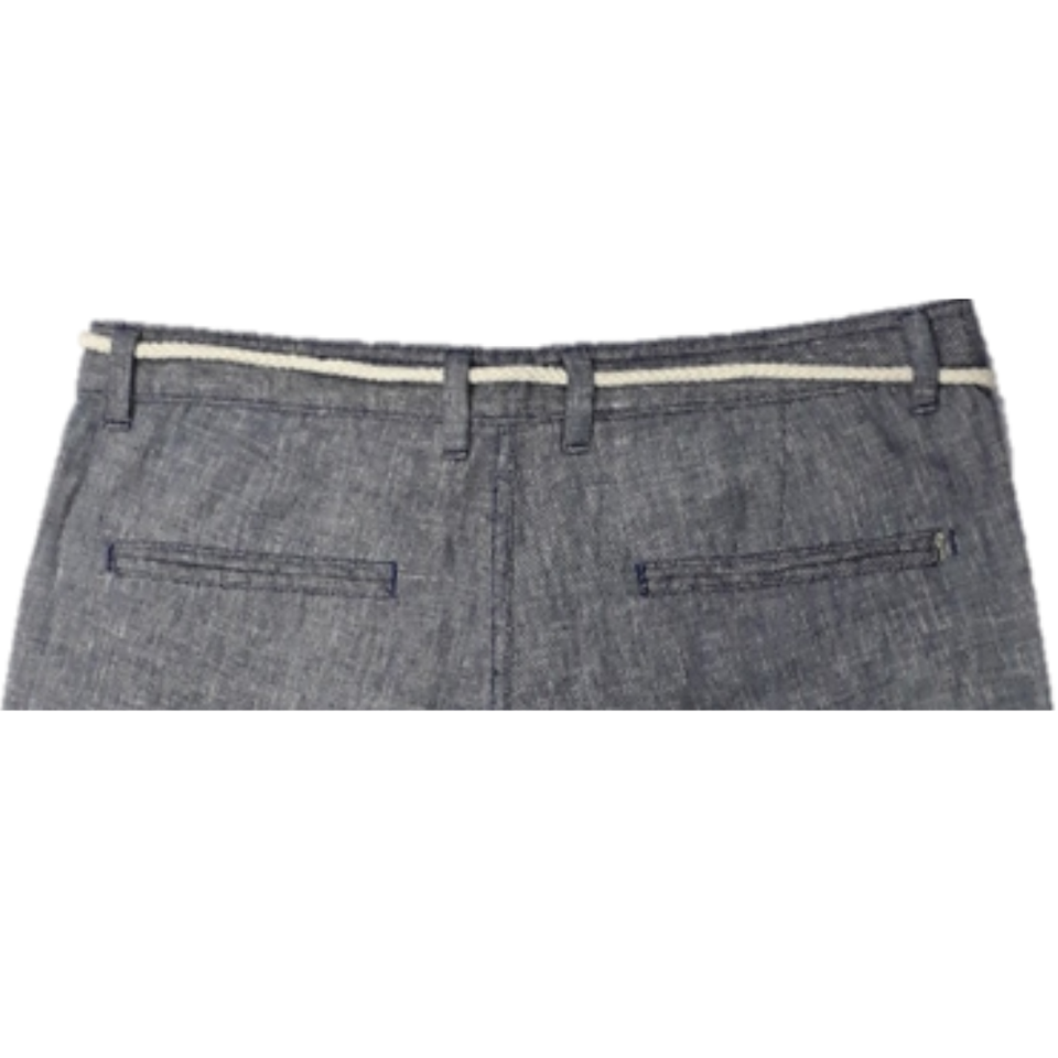Pantalones Cortos Formales de Satén para Hombre con Cierre de Cremallera, Mezcla de Lino Lavado y Algodón, Tejido con Rayas de Pluma Teñidas con Hilo