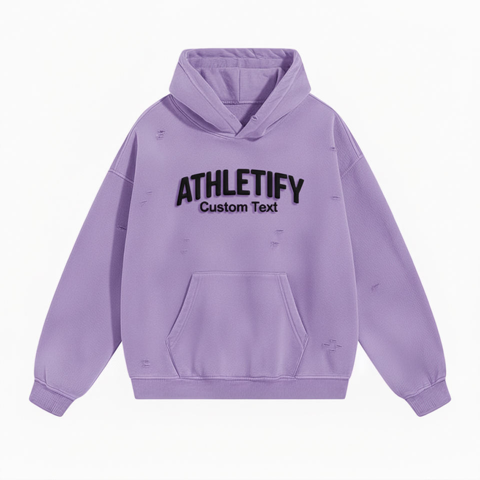 Sudadera con Capucha para Hombre, Estilo Desgastado en la Parte Delantera, Detalles Desgarrados, Mezcla de Algodón, Ajuste Holgado, Transpirable, Informal, para Calle, para Invierno, Cómoda