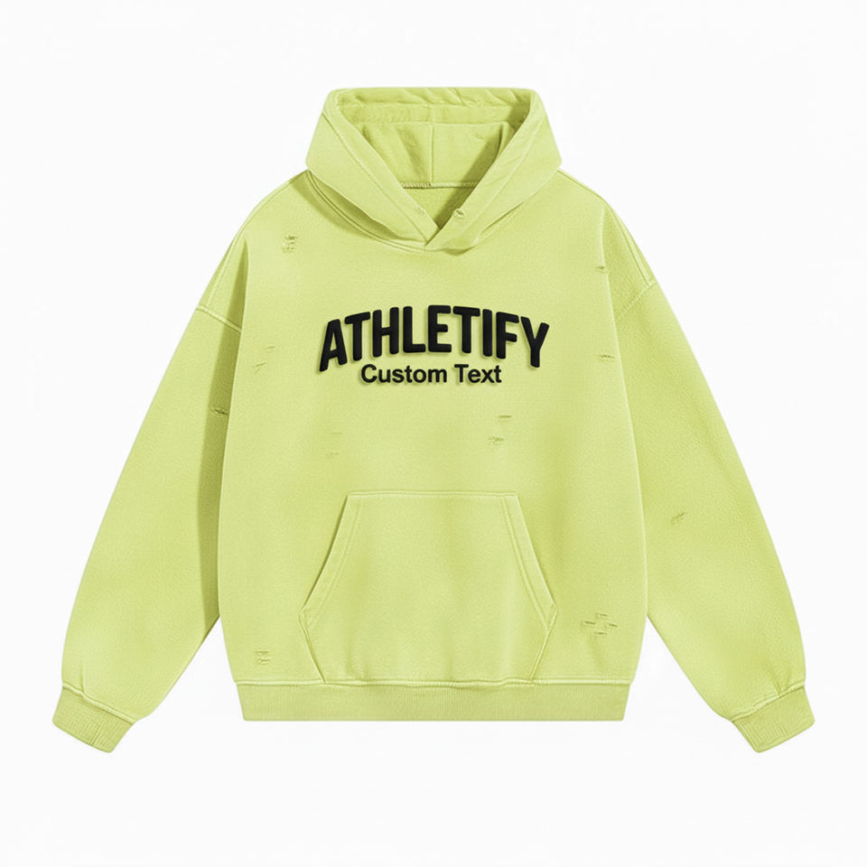 Sudadera con Capucha para Hombre, Estilo Desgastado en la Parte Delantera, Detalles Desgarrados, Mezcla de Algodón, Tejido de Punto, Ajuste Holgado, Transpirable, para Invierno, Informal