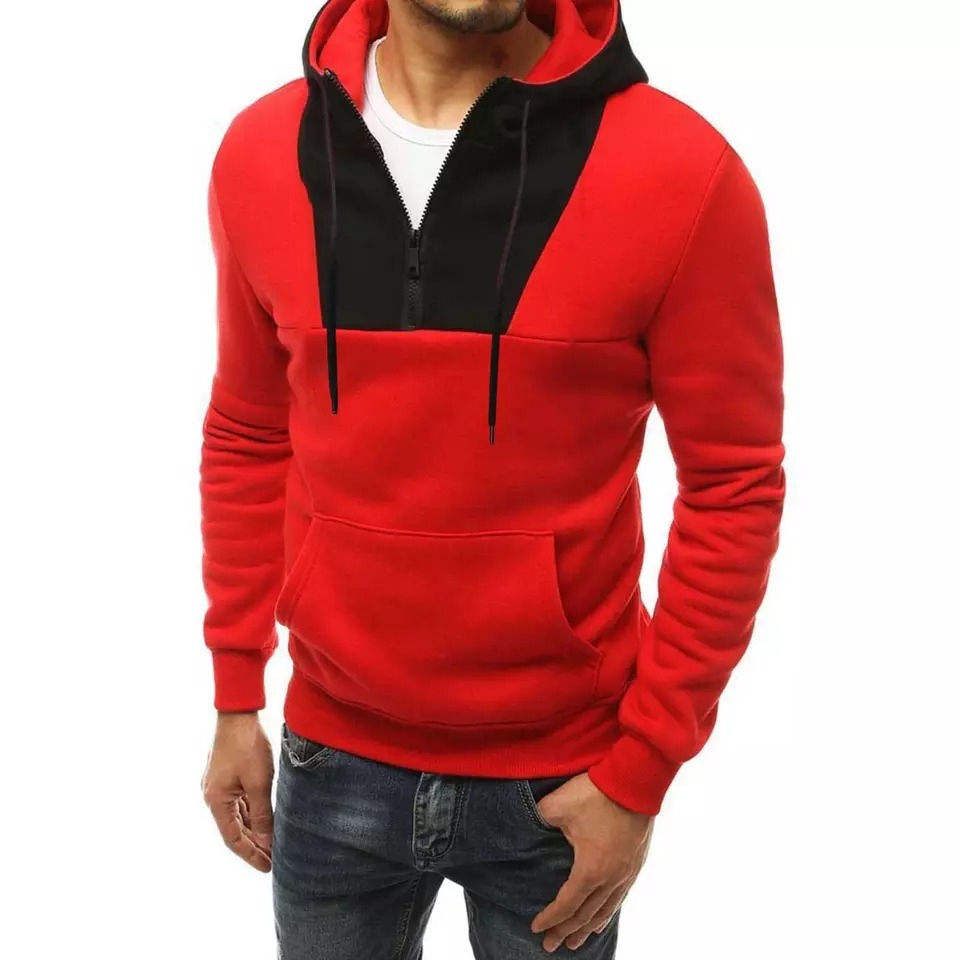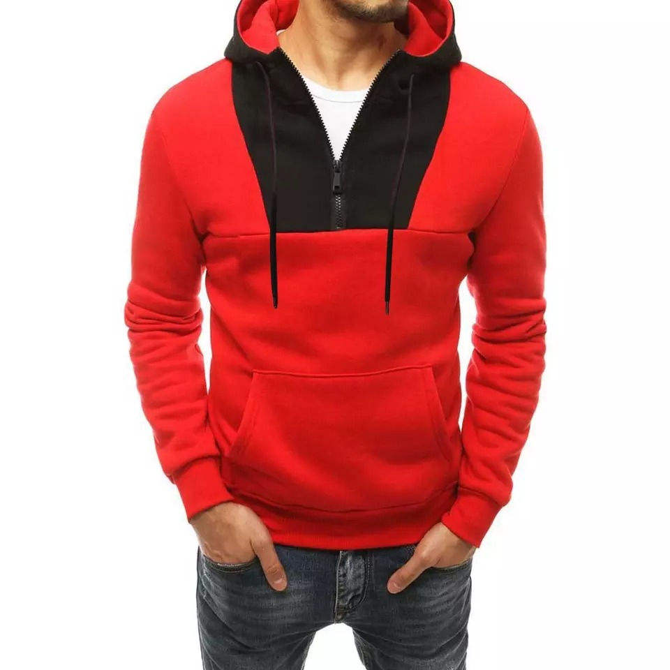 Sudadera con Capucha Roja para Hombre con Cierre Frontal y Bolsillos Tipo Canguro, con Capucha en Contraste Negro, Estilo Deportivo para Gimnasio