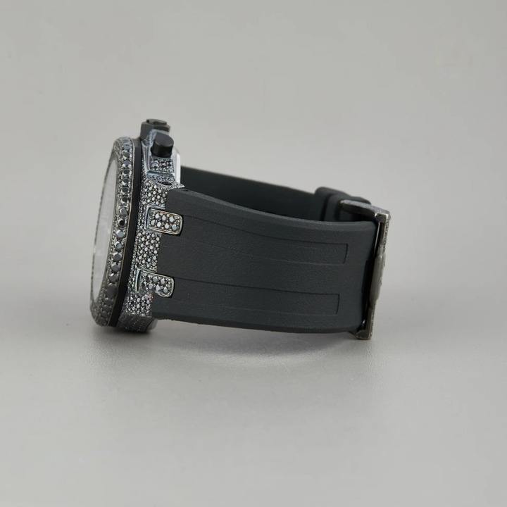 Reloj cronógrafo de cuarzo completamente negro para hombre con diamantes de moissanita cultivados en laboratorio y banda de goma de silicona Hip Hop helado de lujo