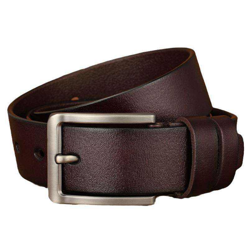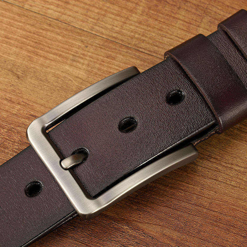 Cinturón Casual de Cuero Vacuno Genuino para Hombre, Pintado, Vintage, Sólido, con Hebilla de Cobre con Marco de Caja, Duradero, 38 mm de Ancho, 110-125 cm de Largo