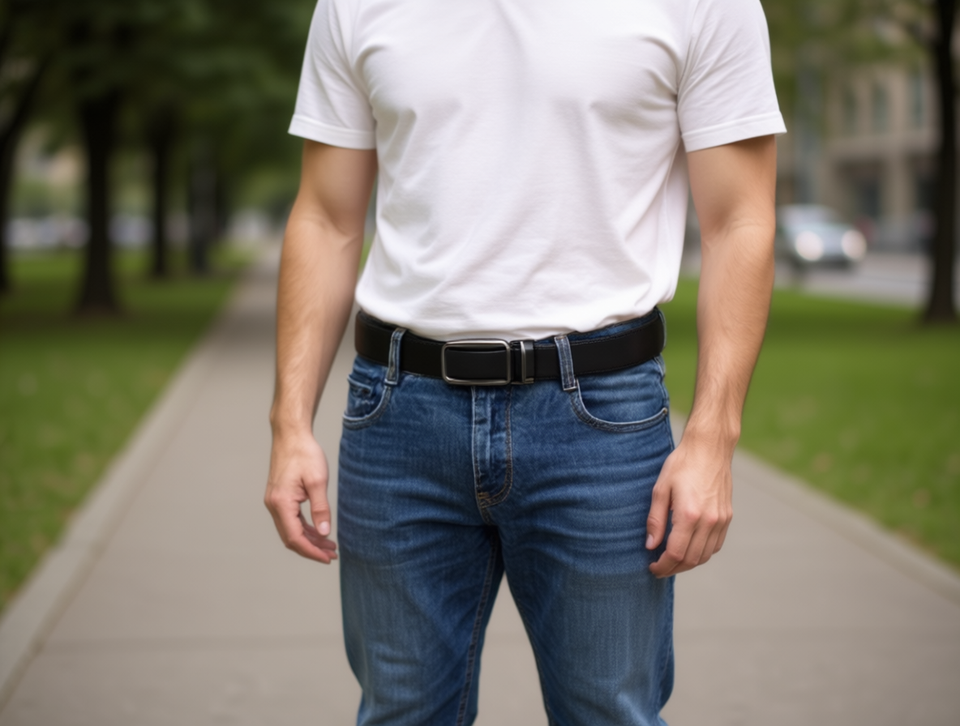 Cinturón de Cuero Genuino para Hombre con Hebilla Automática, 3.5cm x 125cm, Hebilla Rectangular Sólida Informal, Moldeado en una Sola Pieza, Duradero