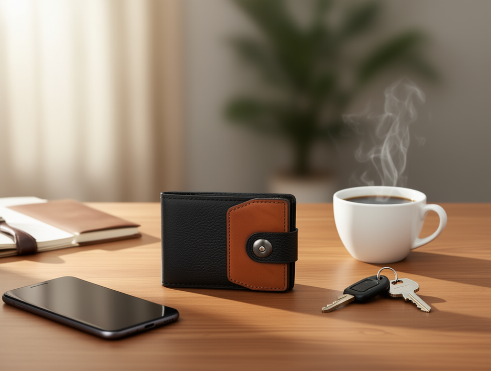 Cartera de Cuero Genuino para Hombre, con un Solo Botón, 5 Pulgadas, Estilo Minimalista Normcore, en Caja de Regalo