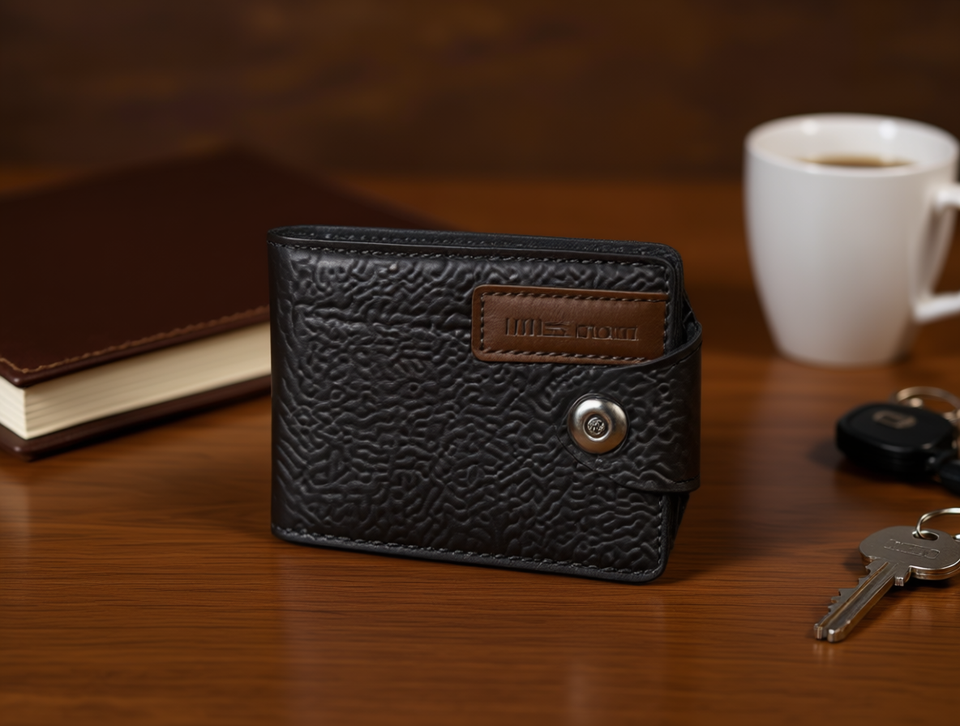 Cartera de Cuero Genuino para Hombre con un Solo Botón y Cierre Corto, en Caja de Regalo