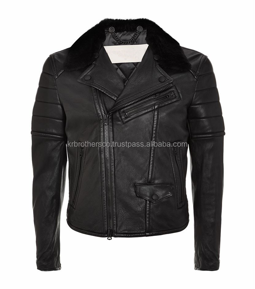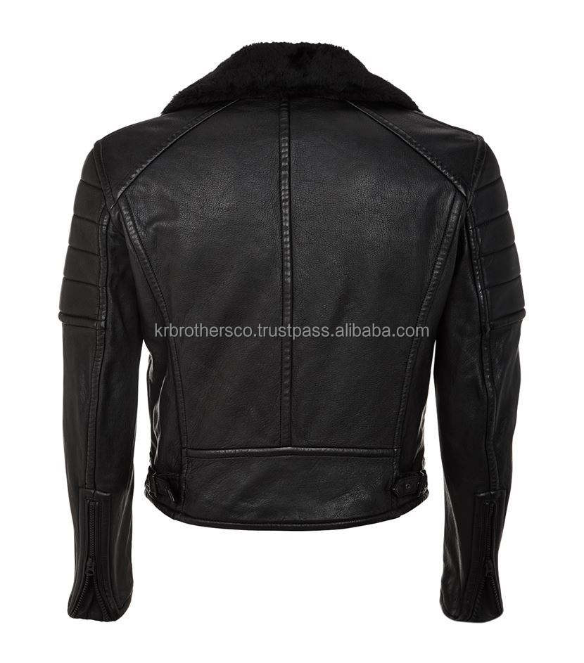 Chaqueta de motorista de piel de oveja genuina para hombre, chaqueta negra con cuello de piel de oveja Brando, cortavientos, cremallera calentada, botón informal de algodón