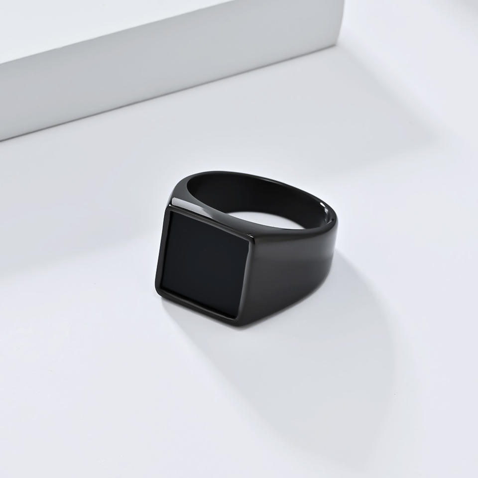 Anillo de Titanio Geométrico Cuadrado para Hombre, Color Oro, Plata y Negro, con Bisel, Joyería de Moda, Accesorio de Regalo