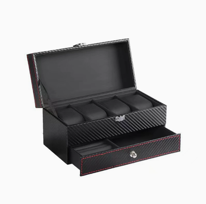 Estuche para relojes de fibra de carbono de doble capa, el más vendido, caja de almacenamiento de joyas para relojes, estuche para relojes de 4 capas, venta al por mayor de fábrica.