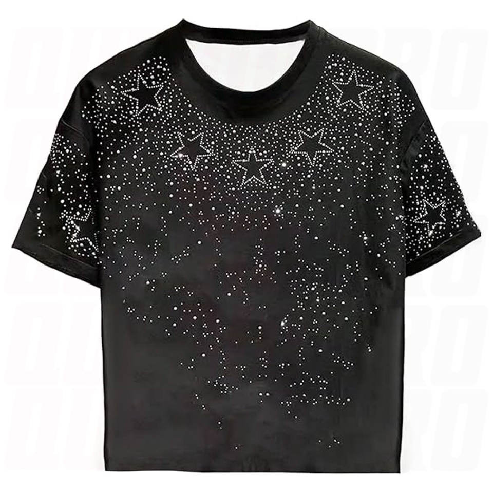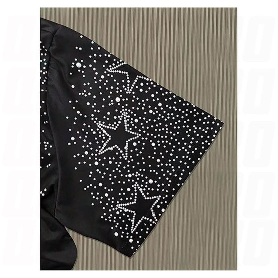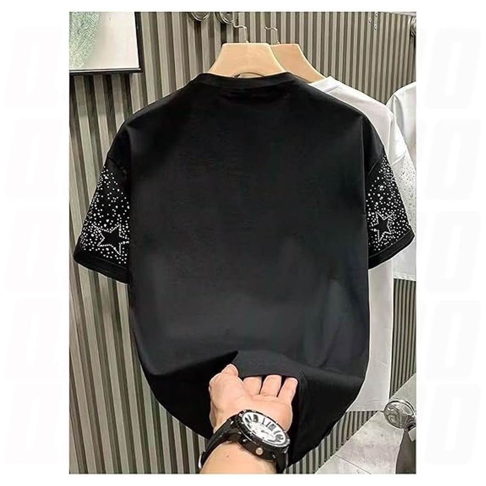 Camiseta con estampado de diamantes de imitación y estrellas brillantes para hombre, camiseta informal de manga corta con cuello redondo, camiseta gráfica brillante, ropa de calle ligera para fiesta y club