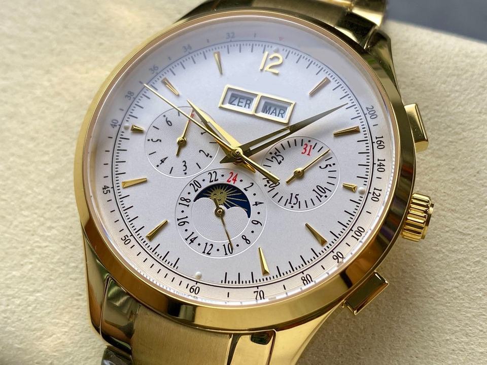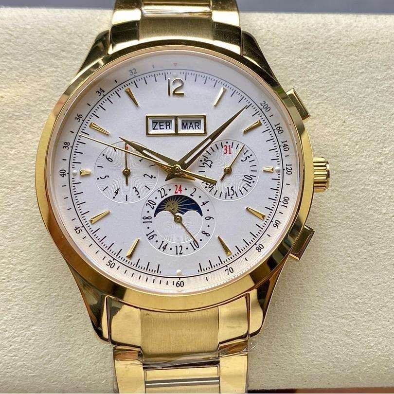 Reloj Mecánico Automático de Acero Inoxidable Dorado para Hombre, Reloj de Vestir Multifunción para Negocios, Resistente al Agua, con Fase Lunar y Calendario