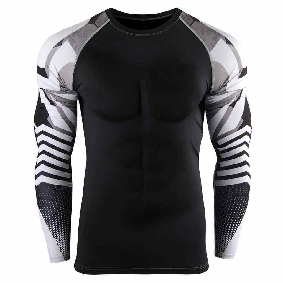 Camiseta Deportiva de Compresión para Hombre, Estampado Geométrico Gótico, Tejido Elástico, Cuello Redondo, 180g, Corte Ajustado, Ecológica, para Todas las Temporadas, para Gimnasio