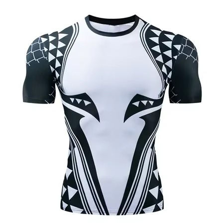 Camiseta de compresión de manga larga con sublimación gráfica para hombre, protección UV, secado rápido, para surf, natación, fitness, gimnasio, ropa deportiva