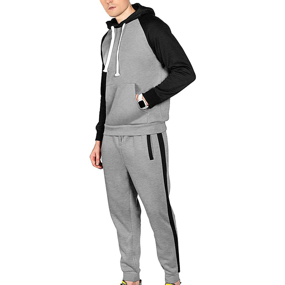 Conjunto de chándal activo de manga larga gris para hombre, chándales de dos piezas para correr, chándal