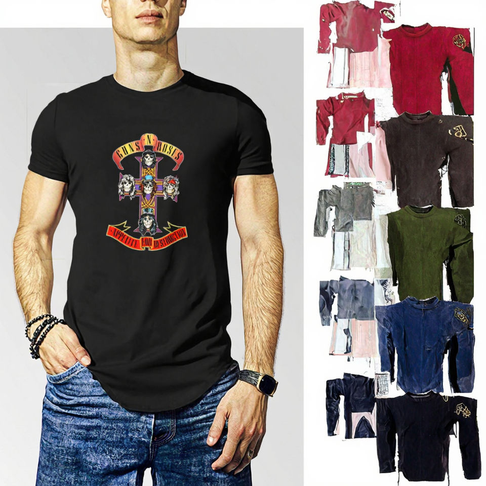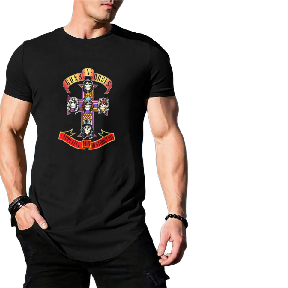 Camiseta de Manga Corta para Hombre Guns N' Roses Appetite, Estampado por Transferencia de Calor de Música Rock, 100% Algodón, 180g, Ajuste Holgado, Estilo Casual