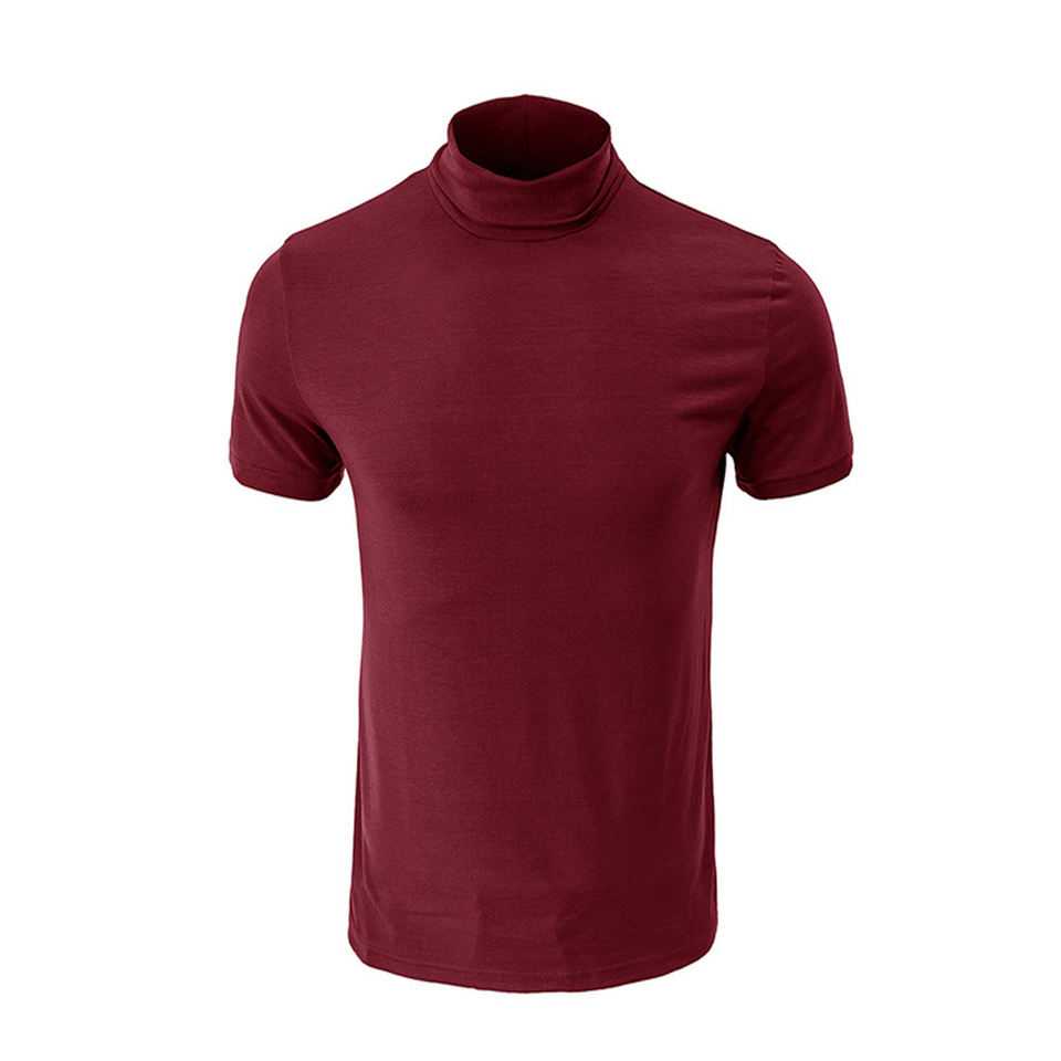 Camiseta de cuello medio alto para hombre, Camiseta ajustada de manga corta de seda, Color sólido, a la moda