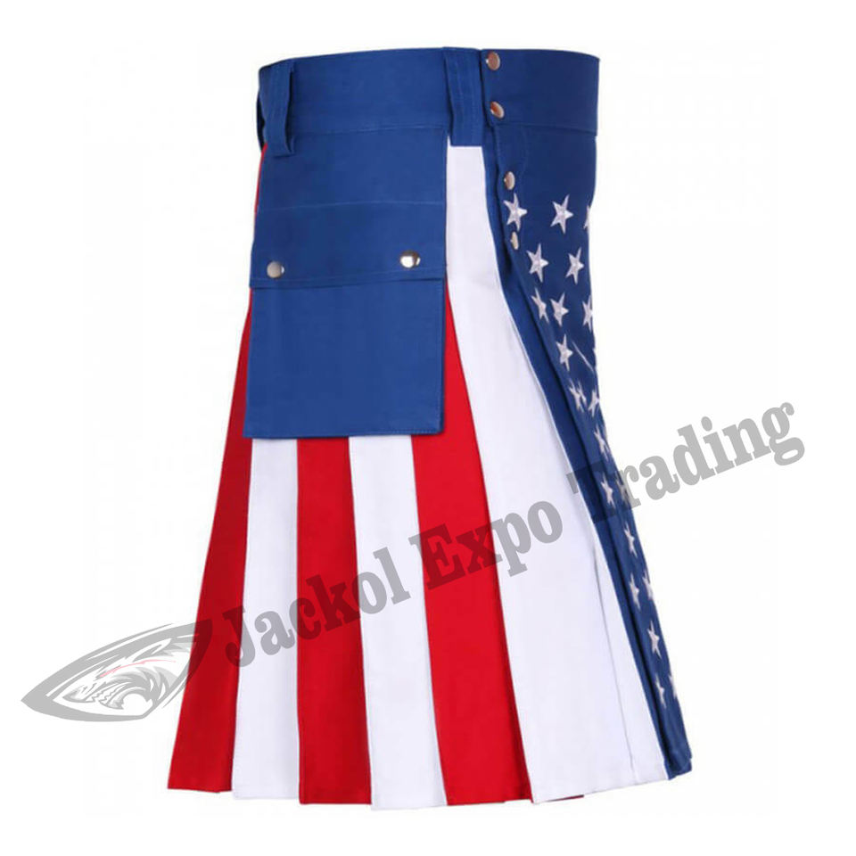 Kilts de tartán escocés hechos a mano por encargo para hombres, Kilts Highlander híbridos con bandera de EE. UU., Kilts de algodón para hombres