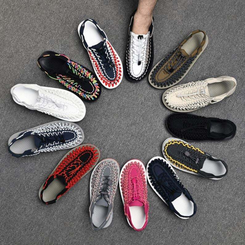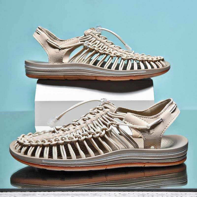 Sandalias de playa con diseño tejido a mano para hombre, zapatillas planas informales transpirables de verano, sandalias de pescador para parejas al aire libre, talla grande